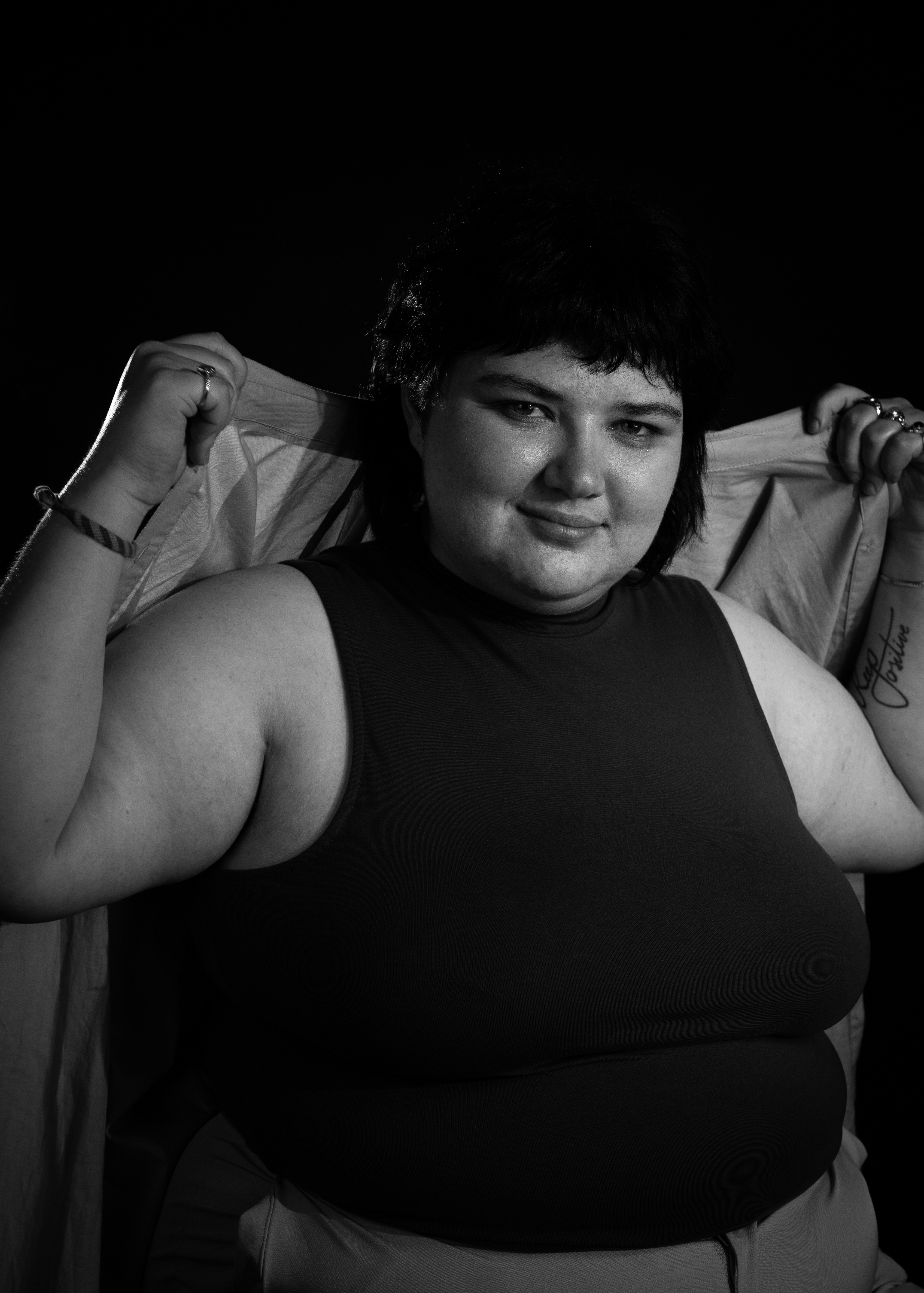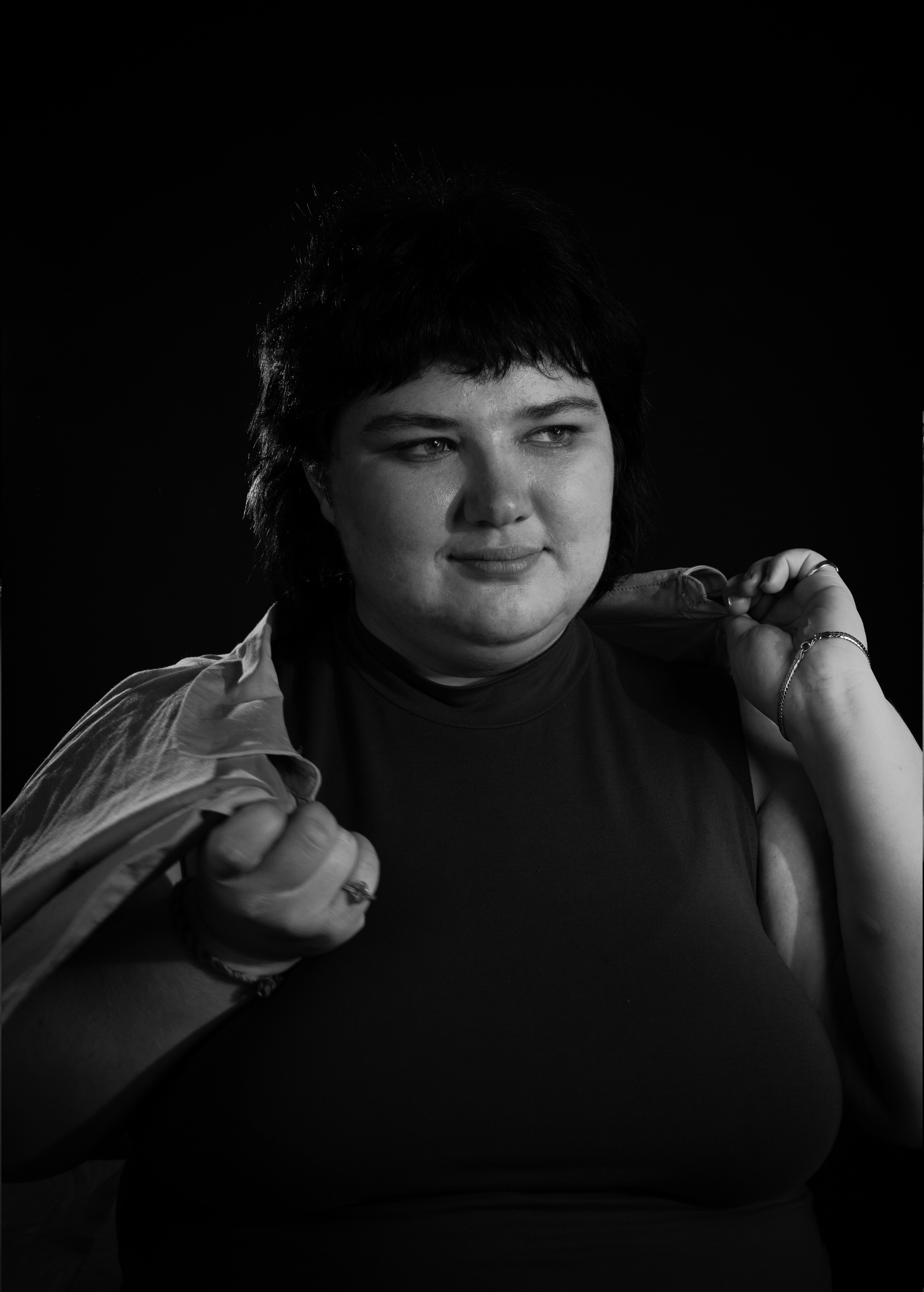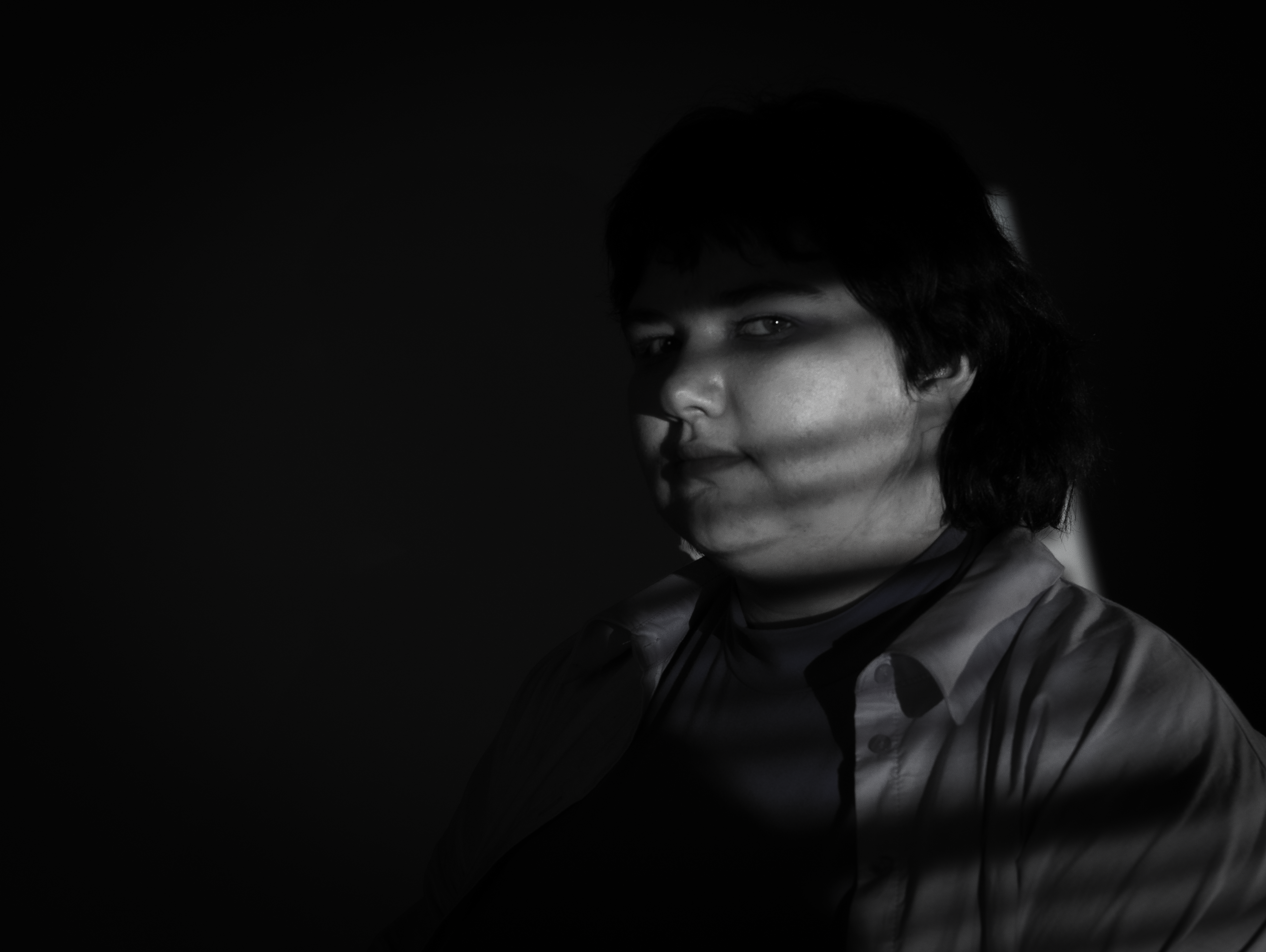 Meine Abgabe in Fotografie zum Thema Portrait. Für das letzte Bild setze ich einen Beamer ein, um den Look und den dadurch entstehenden Schatten von durchleuchteten Jalousinen zu erhalten.